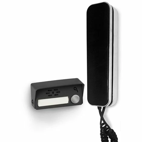 Interphone audio combinĂ© magnĂ©tique – 2 fils Interphone audio 2 fils mains libres. Totalement mains libres, lâAudioBell Magnet vous permet de communiquer directement avec votre visiteur depuis le moniteur intĂ©rieur en appuyant sur la touche tactile dĂ©diĂ©e : le combinĂ© magnĂ©tique se repose tout simplement sur son support ! DĂ©clenchez Ă distance sans sortir de chez vous une gĂąche ou un portail.Composition : 1 combinĂ© intĂ©rieur – 1 platine de rue / bouton poussoir – 1 gabarit de pose – 1 alimentation Ă©lectrique secteur – 1 notice dâinstallation et dâutilisation.Distance de raccordement : 100 m – Nombre de fils : 2 – Installation : en applique – MĂ©lodies : 12 – CombinĂ© mains libres – Finition : noire laquĂ©e – Touches : sensitives – Platine de rue / bouton poussoir : Alliage de zinc – Ătanche : IP56 – Porte-Ă©tiquette rĂ©troĂ©clairĂ©.