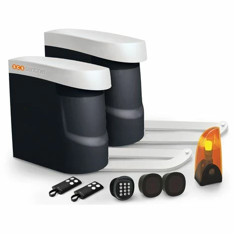 Kit motorisation Ă bras articulĂ©s – 5M et 500 kgs Kit motorisation Ă bras articulĂ©s pour portail Ă battants de 5 mĂštres et 500 kilos (soit 2.5 mĂštres et 250 kilos maximum par battant).Composition du kit : 2 moteurs Ă vĂ©rins – 1 boĂźtier Ă©lectronique (carte CB 100 / P100 PCB 2)- 2 tĂ©lĂ©commandes 4 canaux – 1 feu clignotant antenne intĂ©grĂ©e – 2 photocellules infrarouges.FonctionnalitĂ©s : Bornier de la carte Ă©lectronique avec codes couleurs (pour faciliter le raccordement des diffĂ©rents accessoires) – Ouverture vers lâintĂ©rieur ou lâextĂ©rieur – Ouverture rapide – Ouverture totale et partielle (piĂ©ton) – Angle dâouverture maximum 120° (90° pour ouverture extĂ©rieure) – Ralentissement fin de course – ArrĂȘt sur obstacle – Fermeture automatique – DĂ©verrouillage manuel – Apprentissage de la course.