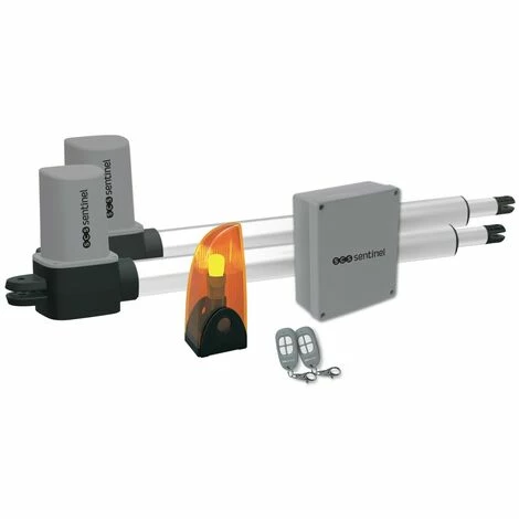 Kit motorisation portail battant Pour portail de 3 mĂštres et de 300 kg maximum (1,5 mĂštres et 150 kg maximum par battant).Composition : 2 moteurs 24 volts + 1 coffret Ă©lectronique + 2 tĂ©lĂ©commandes 4 canaux rolling code + 1 feu clignotant avec antenne intĂ©grĂ©e + 2 pattes de fixation portail + 2 pattes de fixation pilier + 1 notice – visserie.FonctionnalitĂ©s produit :Ouverture vers lâextĂ©rieur ou lâintĂ©rieurOuverture piĂ©ton (ouverture partielle)Ralentissement de fin de courseArrĂȘt sur obstacleFermeture automatique (si photocellules)DĂ©verrouillage manuelApprentissage de la courseTĂ©lĂ©commande Ă code secret tournantRĂ©glage de lâeffortMise en service simplifiĂ©eTension dâalimentation;230 VoltsTension de fonctionnement;24 VoltsTemps dâouverture Ă 90°;environ 15 sTempĂ©rature de fonctionnement;-10°C Ă +50°CMĂ©canisme Ă vĂ©rins;OUI