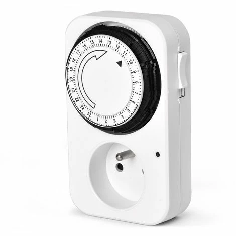 Prise programmable mĂ©canique 24H – coloris blanc – programmation sur 24h par tranche de 15 minutes. Prise Ă petit prix.