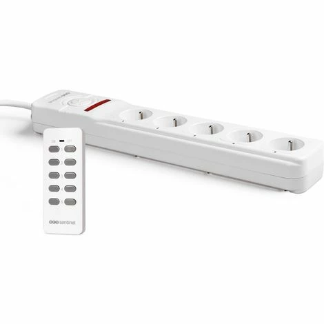 Rallonge multiprise tĂ©lĂ©commandĂ©e + 1 tĂ©lĂ©commande 5 canaux Rallonge tĂ©lĂ©commandĂ©e comprenant 5 prises avec cordon de 3 mĂštres + 1 tĂ©lĂ©commande.Ă distance, commandez jusquâĂ 5 appareils Ă©lectriques individuellement (votre Ă©clairage, la TV, le home cinĂ©ma, la chaĂźne HIFI et la box internet par exemple) avec la mĂȘme tĂ©lĂ©commande. CaractĂ©ristiques : Alimentation (multiprise) 230V ~50Hz – Alimentation (tĂ©lĂ©commande) 1 pile LR23-A-12V – FrĂ©quence 433.92 MHz – Charge maximale 2300W 10A – Puissance max dâĂ©mission < 1mW – Utilisation intĂ©rieure.